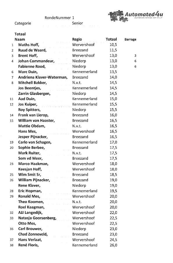 Bij de junioren was Wervershoof ook de winnaar; Judith Bakker won met 13,0 strafpunten, gevolgd door Sjors Mes een 2e plaats met 14,5 strafpunten.